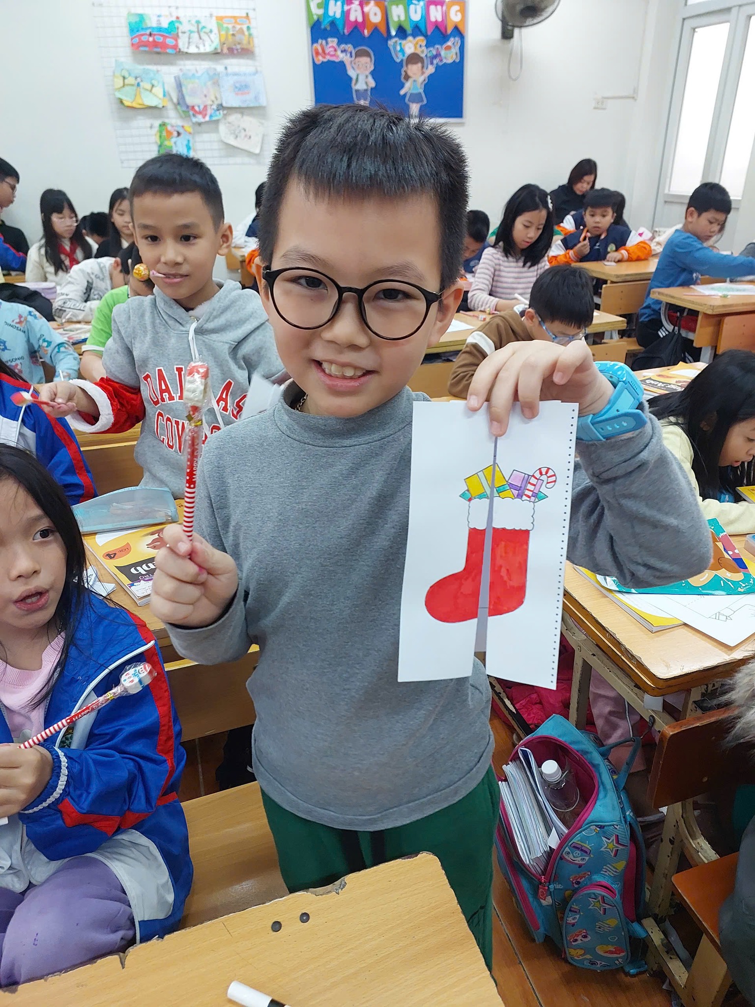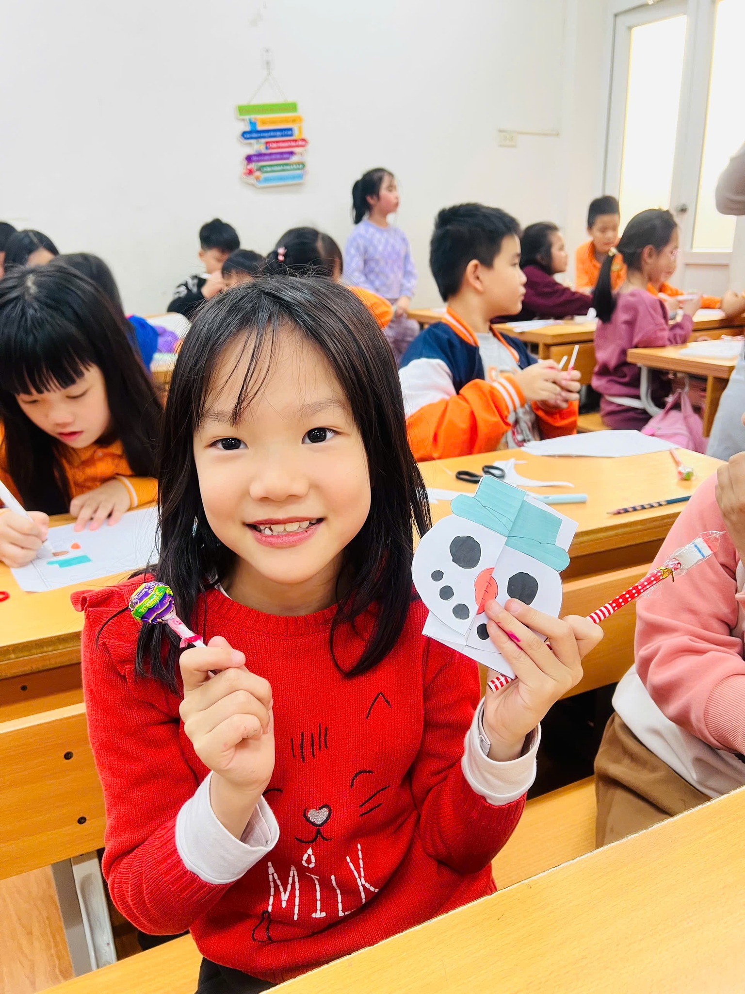 Hoạt động không chỉ giúp các em mở rộng kiến thức văn hóa và vốn từ tiếng Anh, mà còn mang lại cảm giác ấm áp, gắn kết và yêu thương trong mùa lễ hội cuối năm.
