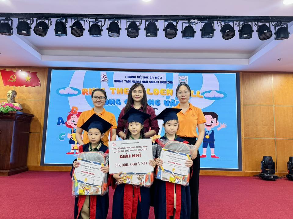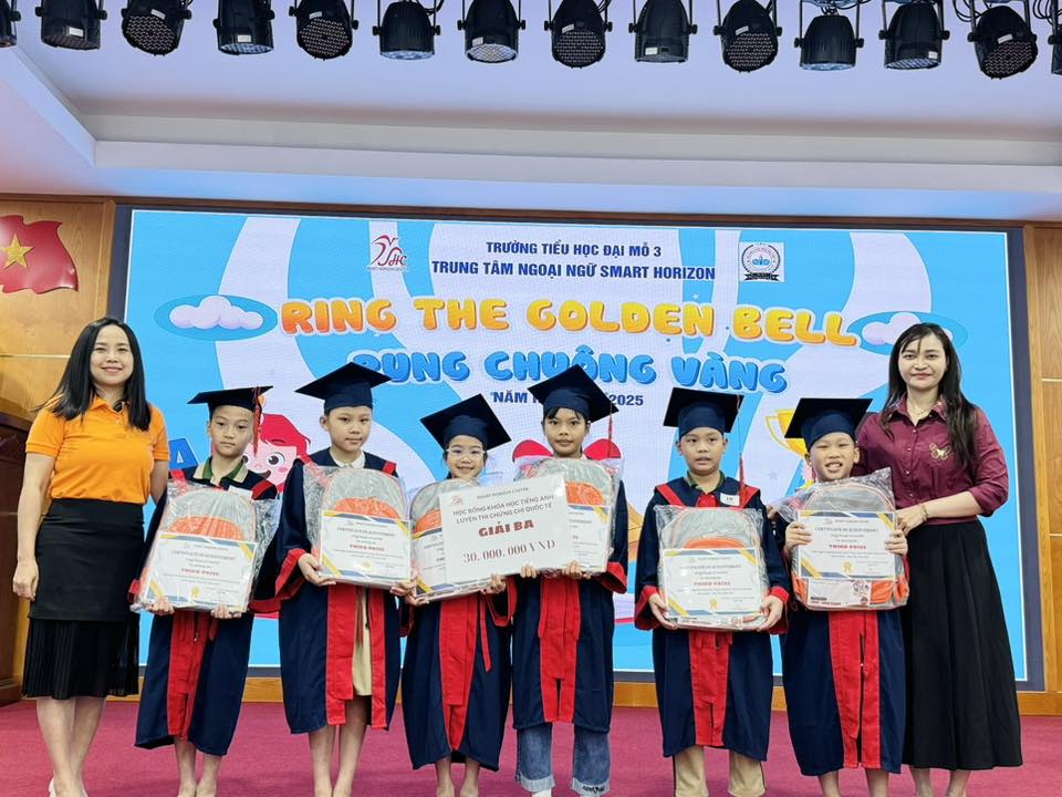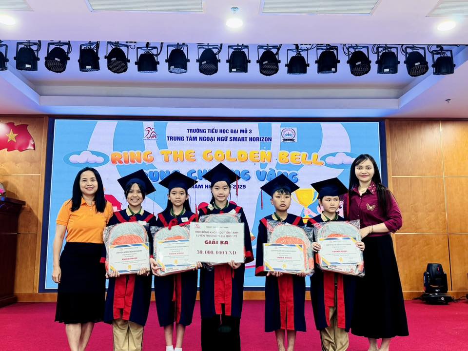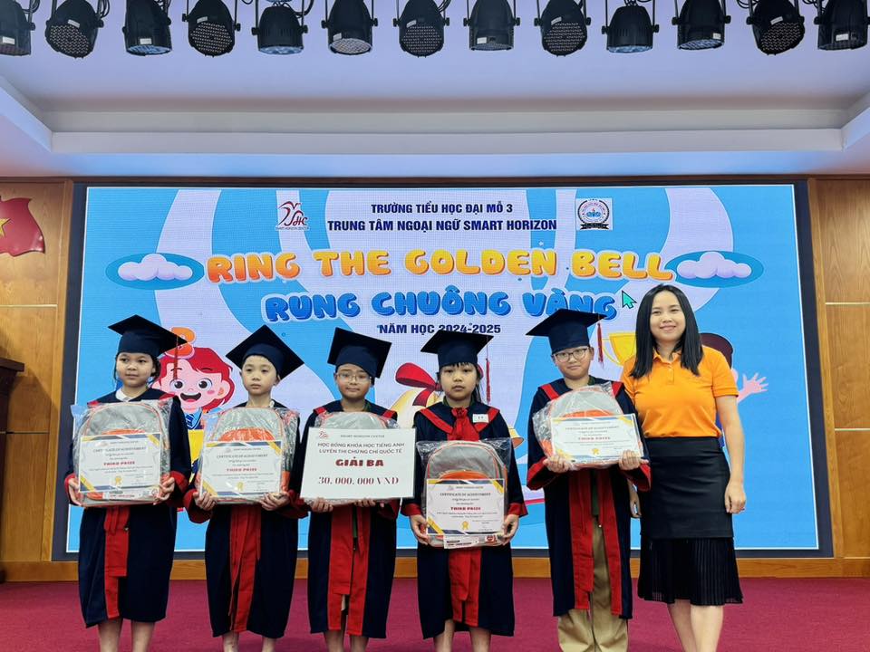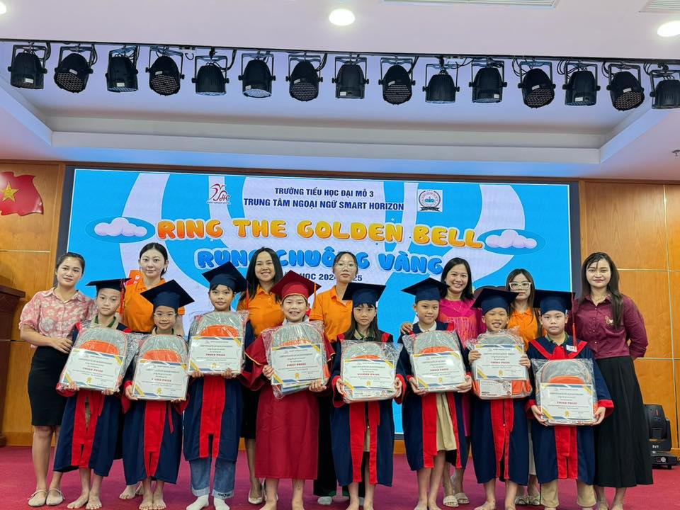 Trường Tiểu học Đại Mỗ 3 phối hợp với trung tâm Tiếng Anh Smart Horizon Center tổ chức cuộc thi Rung Chuông Vàng Tiếng Anh. Cuộc thi mang đến một sân chơi bổ ích, nơi các bạn nhỏ được thử sức với những câu hỏi thú vị bằng tiếng Anh, nâng cao kỹ năng và thêm tự tin khi sử dụng tiếng Anh.