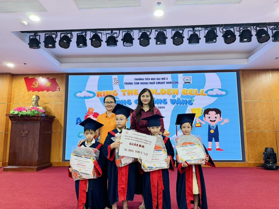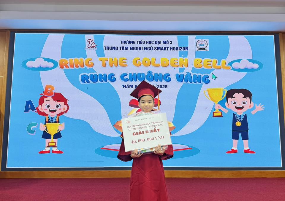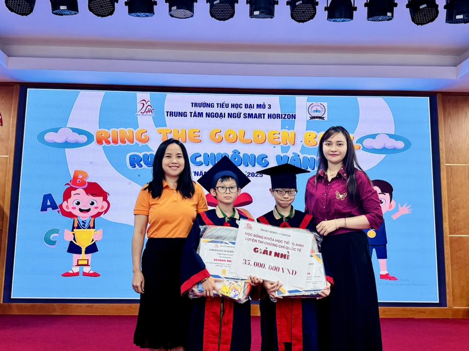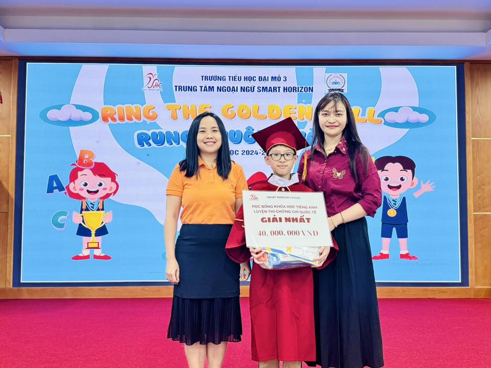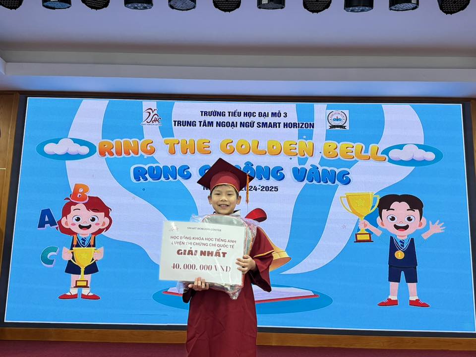 Trường Tiểu học Đại Mỗ 3 phối hợp với trung tâm Tiếng Anh Smart Horizon Center tổ chức cuộc thi Rung Chuông Vàng Tiếng Anh. Cuộc thi mang đến một sân chơi bổ ích, nơi các bạn nhỏ được thử sức với những câu hỏi thú vị bằng tiếng Anh, nâng cao kỹ năng và thêm tự tin khi sử dụng tiếng Anh.