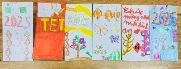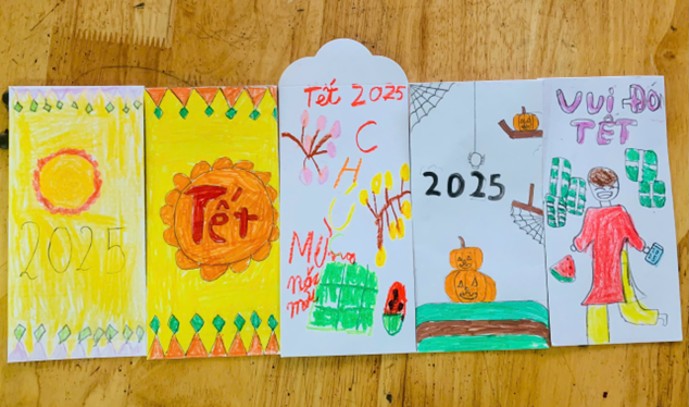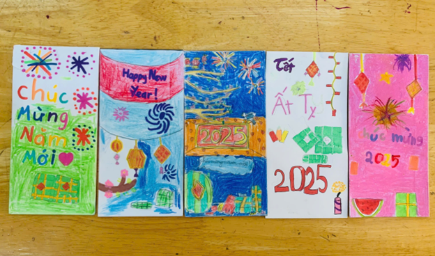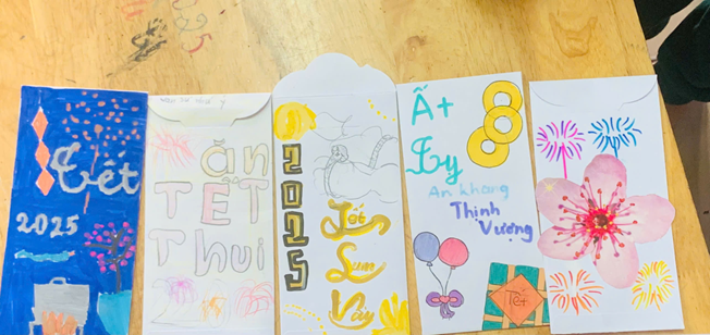 🌟 Tự tay trang trí bao lì xì với những hình ảnh vui nhộn và lời chúc đầu năm bằng tiếng Anh do chính các em viết