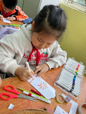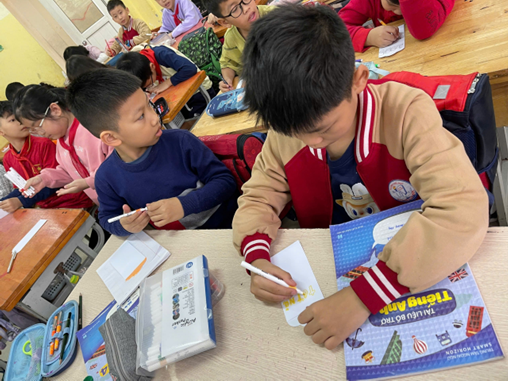 Hoạt động không chỉ giúp các em nâng cao vốn từ vựng, phát triển kỹ năng ngôn ngữ mà còn khơi dậy sự trân trọng với các giá trị truyền thống. Mỗi em học sinh đều mang về một sản phẩm tự làm cùng những kỷ niệm đáng nhớ trong những ngày đầu năm.