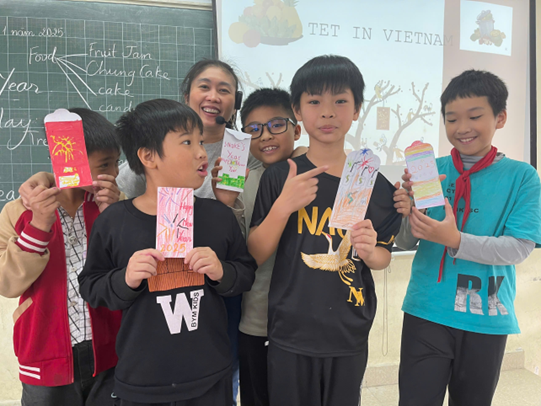 🎨 Tự tay trang trí bao lì xì: với màu sắc rực rỡ, lời chúc bằng tiếng Anh và họa tiết sáng tạo, các em đã tạo ra những phong bao lì xì mang đậm dấu ấn cá nhân, đầy ý nghĩa và đáng yêu.